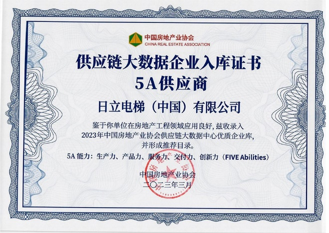 同時,名嘉电梯憑借在“生産力、産品力、服務力、交付力、創新力”的出色表現,成爲中國(guó)房(fáng)地産業協會供應鏈大(dà)數據中心“5A供應商” 入庫企業。
